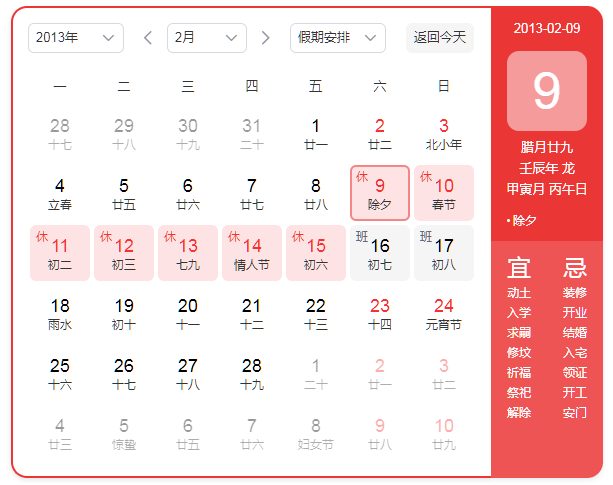 根據國務院辦公廳2013年放假安排,結合公司實際情況,經公司研究決定,2013年春節放假具體安排如下: