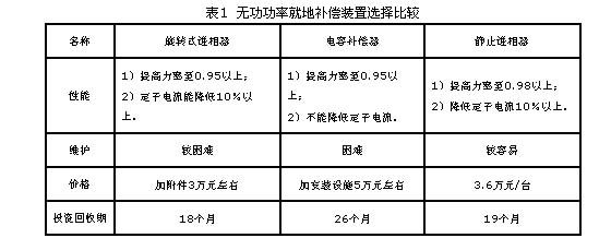 表1 無功功率就地補(bǔ)償裝置選擇比較