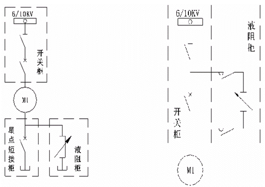 高壓軟啟動柜對于電機降壓限流起動,這里用液體電阻與串分級切換阻抗作對比定性分析。